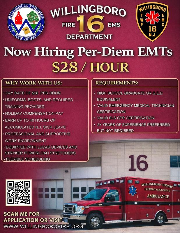 Willingboro Township EMS is currently accepting applications for per-diem EMT employment.