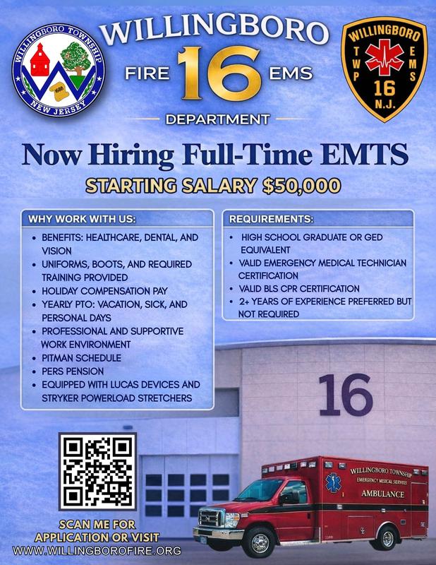 Willingboro Township EMS is currently accepting applications for full-time EMT employment.